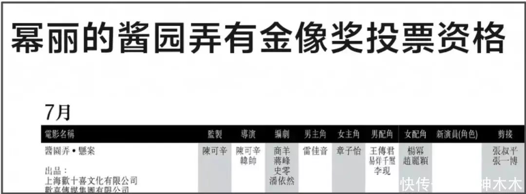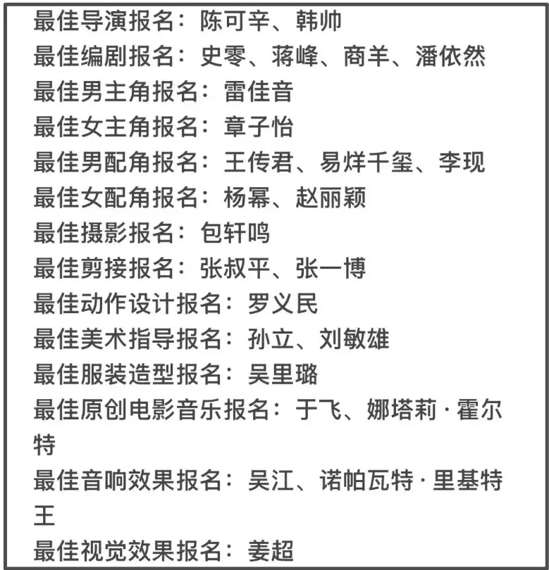 最佳导演、编剧、男女主奖都遇上了大年,《酱园弄》大概率没机会,配角奖可不好说啊!