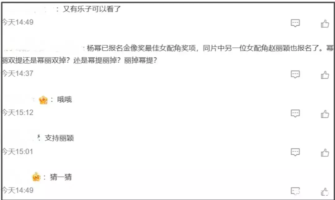 杨幂和赵丽颖双双拿下最佳女配奖提名的概率约等于零,双双掉提无非就是复刻金鸡奖,未来还需努力。